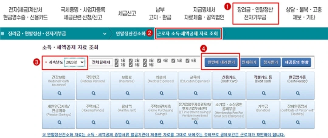 3. 귀속년도 2023년 확인 > 한번에 내려받기 클릭