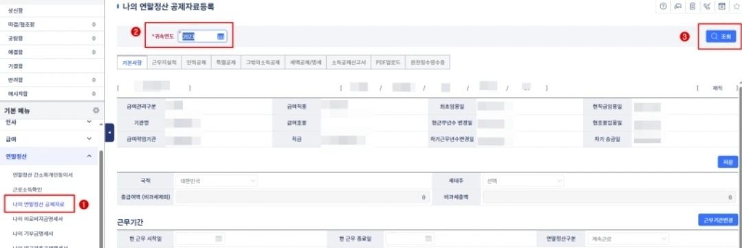 2. 장려금/ 연말정산/ 전자기부금 탭 > 근로자