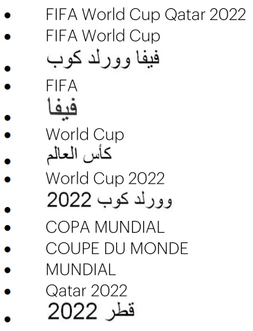 FIFA®는 국제 토너먼트, 특히 1930년에 시작된 월드컵과 1991년에 시작된 여자 월드컵의 조직 및 홍보를 담당하는 역할을 하며, 월드컵과 함께 사용되는 브랜드를 관리하고 있는데, 2022.6월, 공식 지식재산권 자료 배포를 통해 토너먼트와 FIFA 와 관련된 로고, 문자, 타이틀, 심볼을 포함한 브랜드 사용에 대한 가이드라인을 제시하였다.
