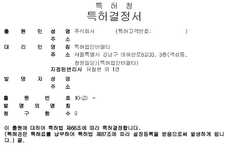 [서일효 변리사의 특허 백과사전] 특허결정서를 받으면, 비로소 보이는 것들 : BLT칼럼 | 특허법 [특허청에서 발송하는 특허결정서]특허청에서는 특허출원에 대하여 거절이유를 발견할 수 없으면 특허결정을 하게 되며, 이에 따라 위와 같은 특허결정서(등록결정서)를 발송한다. 특허결정서