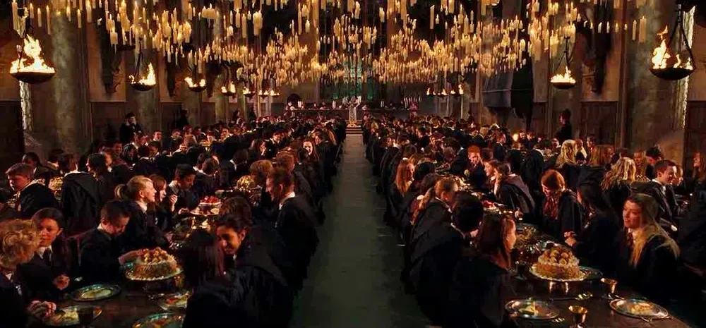 해리와 론, 헤르미온느는 매일 밤 커다란 홀(Hall)에 가서 저녁을 먹습니다. 몇백 년 된 궁전 같은 곳에서 모두 모여 식사를 하는 연회는 낭만 있어 보이고, 촛불과 그들의 일관된 복식은 분위기를 더하죠. 포터네 학교는학년제도 한국과 다르고, House system(그리핀도르, 슬리데린, 후플푸프와 레번클로)도 가지고 있어 나는 어디에 배정될지 상상해 보는 재미도 있습니다. 모든 것들이 우리네 삶과 너무 달라 나도 모르게 동경하게 되죠.