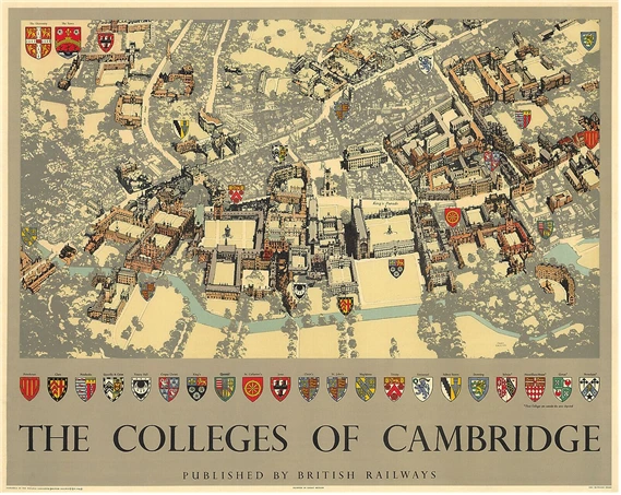 포스터에는 21개의 컬리지만 나와 있는데, 안타깝게도 센터에 있지 못한 10개의 컬리지들이 탈락했다. 하지만 포스터에만 없을 뿐, 컬리지는 총 31개로 그들의 고유한 건물이 케임브릿지 도시 내 곳곳에 위치한다. 제목 위의 알록달록한 방패들은 'Crest'라고 불리는데, 이들이 각 컬리지의 고유한 문양이다.