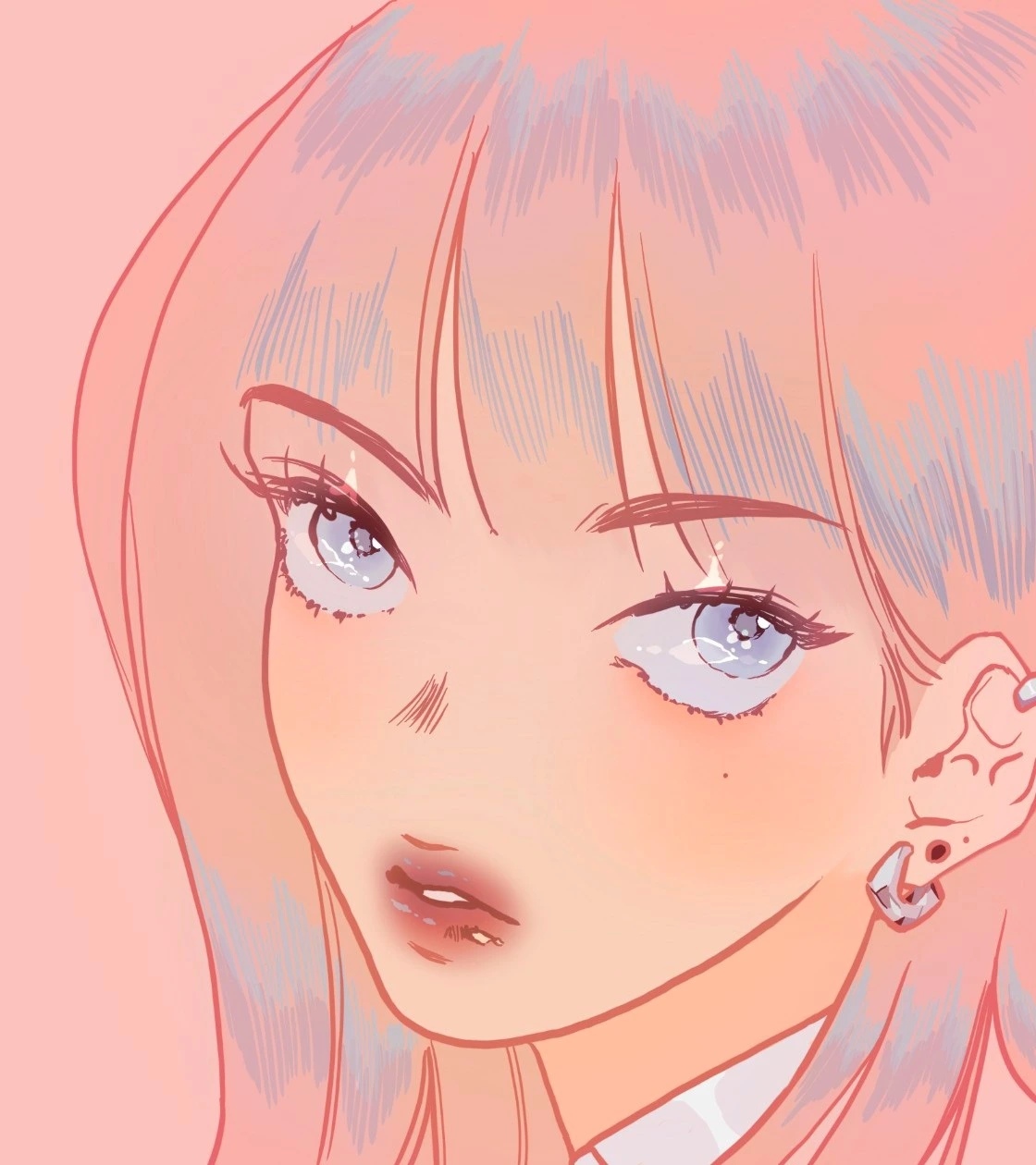 일러두자면 나는 취미로 그림을 그리는데, 아실지 모르겠지만 취미로 그리는 그림에도 철학이 있다. 나의 경우 현실에 없는 걸 만들어낼 수 있다는 사실에 주목한다. 아래의 그림을 보라. 분홍색 머리칼에 푸른색 명암이 있을 수는 없고, 탕후루의 질감이 인간에게서 날 수는 없다.