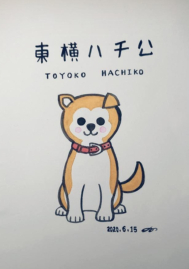 영화 하치이야기의 주인공 하치코. 주인이 죽은 뒤에도 9년 동안 하루도 빠짐없이, 늘 배웅하던 시부야역에서 기다렸다고 한다. 하치코가 죽은 후 이를 매우 슬퍼하던 사람들이 넋을 기리기 위해 역 앞에 동상을 세웠다. 아즈사와 시부야역으로 가는 도보에 하치코의 캐릭터가 채워진 벽면을 발견했다. 역시! 명실공히 시부야역의 마스코트다.