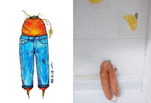 상등품에서 벗어나 못 생겼지만 맛 좋고 저렴한 국내산 당근이 포장된 더미에서 발견해 한눈에 반한 두 다리를 가진 흙당근. 주황색 당근이 자신의 긴 다리로 마치 청바지를 입고 있는 듯한 모습에 울컥했다. 내게 몸과 마음의 상처를 남기고 인생의 쓰디쓴 실패를 안겨주었지만 여전히 너무나 좋아하는 청바지에 대한 그리움은 재미난 겉모습을 가진 당근과의 만남으로 브런치에 글을 쓰며 다시 내 삶에 돌아왔다.