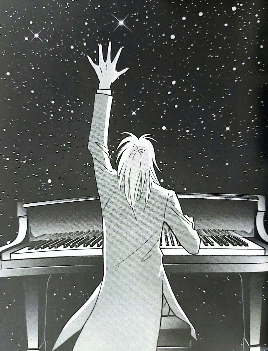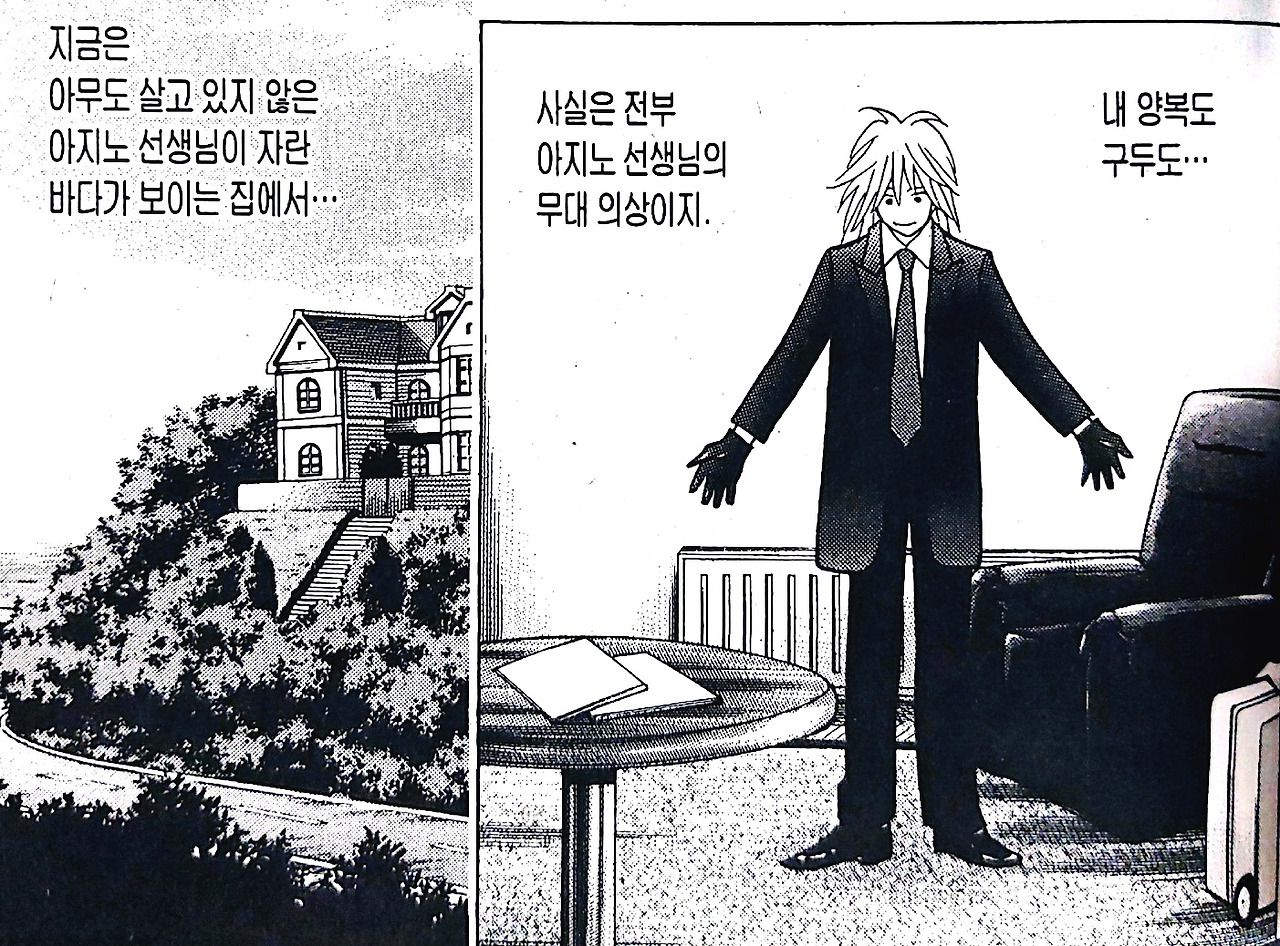 단행본 21권의 표지와 작품 안에서도 연주복을 입었을 때 유독 강조된 카이의 뒷모습은 의자에 앉아 연주할 때를 위한 작가의 의도된 연출이다. 뒤판 허리 밑에 있는 사이드 슬릿(트임)이 특징으로 의자에 앉으면 밑단이 세 방향으로 갈라져 나무뿌리를 연상하게 만들어 마치 한 그루의 나무가 무대라는 숲에 살고 있는 모습을 그린다. 카이라는 소년이 성장하는 시기와 이야기의 과정에 맞춰 입는 옷에 의미를 부여하고, 나무가 땅속에서 뿌리를 사방으로 펼친 모습을 형상화한 연주복을 만든 만화가 이시키 마코토에게 나는 감탄하며 아낌없는 찬사를 보낸다. 이토록 짜임새 있고 아름다운 설정은 작가가 자신의 작품과 캐릭터에 깊은 애정과 관심을 기울여야 나올 수 있기 때문이다.