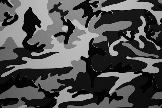 *카무플라주 프린트(camouflageprint)- 잎사귀와 그물의 초록과 밤색이 어우러진, 위장을 위한 문양. 자연주의와 밀리터리 룩의 재현으로 캐주얼 룩에 많이 이용된다./ 국어사전