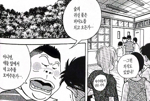 원작자의 동의를 얻었다고 했지만 내용 일부를 수정한다는 것은 작품의 권리를 침해하는 행위다. 국내 심의 기준에 따라 만화에서 선정성과 폭력성이 짙은 장면을 보이지 않게 처리하는 경우가 있지만 작품에서 작가가 표현하려는 원래 의도를 왜곡할 수도 있어 있는 그대로 독자에게 보이기를 모든 만화가가 바란다. 그러나 <피아노의 숲>은 그림의 형태와 더불어 내용까지 부분적으로 수정 작업을 거쳐야 했다. 일본에서 나온 원서와 내용을 비교해 보면 선정성과 폭력성을 나타내는 어휘를 대체할 수 없어 문장 자체가 탈바꿈되는 일도 드물지 않다. 이것은 한 나라의 역사적 특수성에서 오랜 시간 이어 저온 뿌리 깊은 차별과 멸시의 문화를 한국 독자에게 배경지식으로 설명할 수 없는 것에서 기인했다.