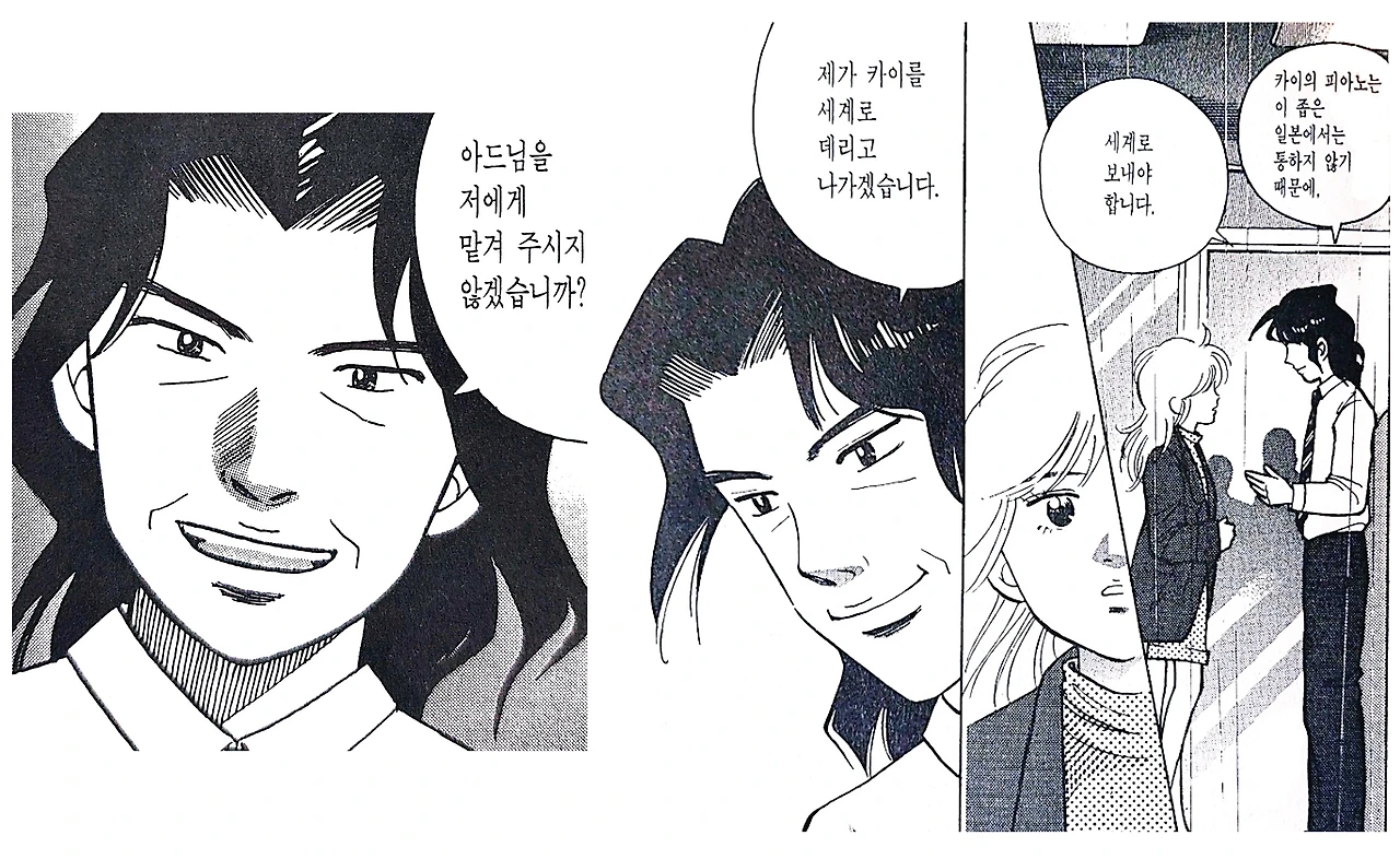 콩쿠르의 결과에 상관없이 카이를 출전시킨 아지노는 청중 앞에서 독보적인 개성으로 음색을 내는 연주와 예선 불합격 통보를 보며 일본의 좁은 기준으로는 아이의 꿈을 제대로 키워 줄 수 없다고 생각해 세계 무대로 데리고 나갈 것을 결의한다. 불가항력으로 부라쿠민이자 창부의 아들이라는 멍에를 태어나면서부터 짊어지고 뛰어난 재능을 가졌음에도 국내 피아노 업계에선 환영받지 못하는 삶이 너무나 가혹했기 때문이다.