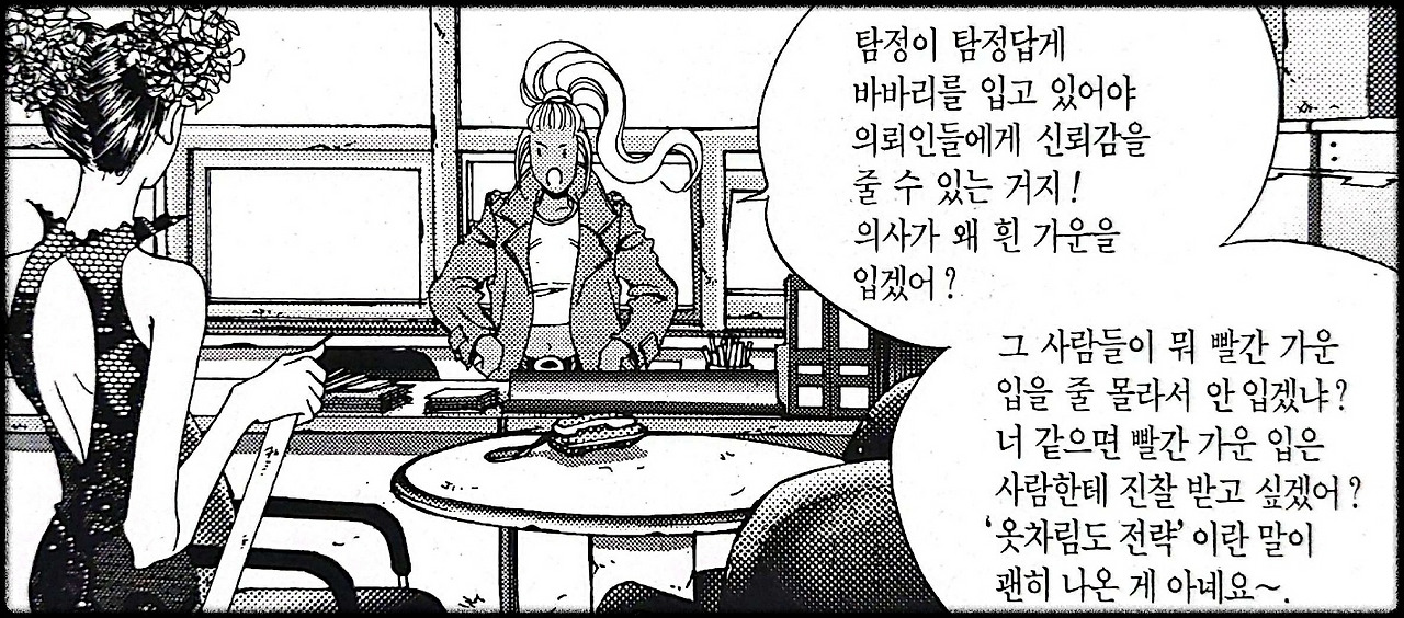 탐정으로서 자신의 정체성을 옷으로 얘기하는 부옥, 그녀에게 바바리(트렌치코트)는 곧 탐정이다./ 이미지-단행본 발췌