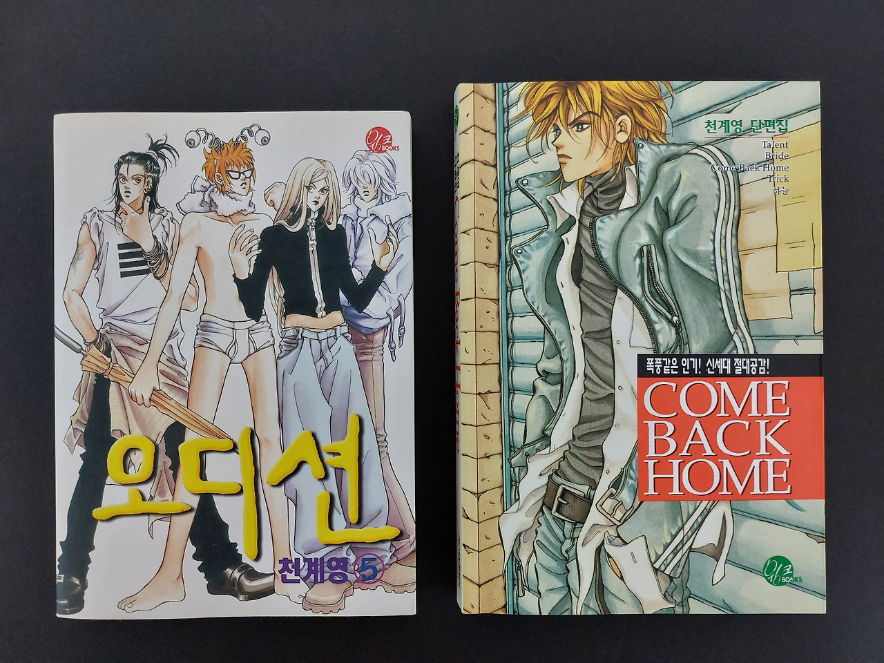 (좌측) <오디션> 단행본 5권 표지의 네 명의 천재 소년들과 공모전 대상을 받은 작가의 데뷔작 <TALENT>가 수록된 단편집 <COME BACK HOME> / 개인 소장