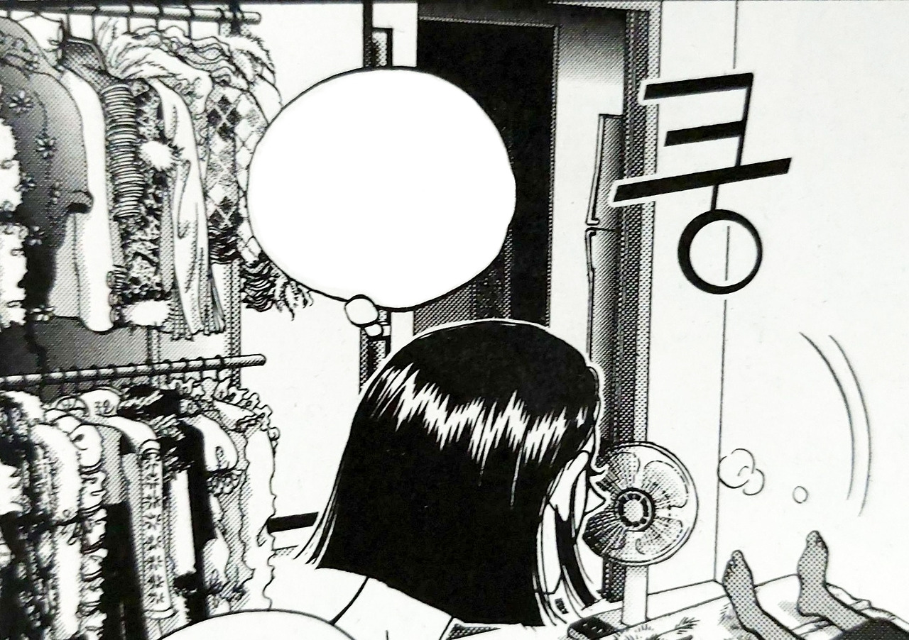 원래 살던 집에서 쫓겨나 부옥의 원룸에 얹혀사는 명자가 가지고 온 옷들이 방을 한가득 채웠다 / 이미지- 단행본 발췌
