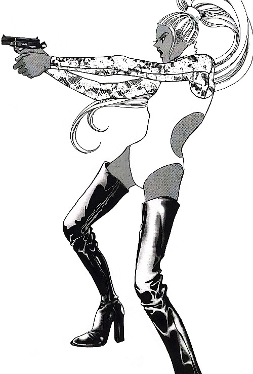 바바리(트렌치코트)를 탐정의 상징으로 알며 365일 입는 여자 박부옥. 보디슈트에 허벅지까지 오는 싸이하이 부츠도 소화하는 패셔니스타 탐정이다 / 이미지-단행본 발췌