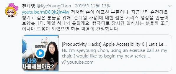 현재의 상태를 인정하고 나아갈 길을 모색하는 긍정적인 모습은 타인을 위한 배려와 같이했다. 트위터와 유튜브를 통해 음성으로 작업하는 모습을 공개하며 홀로 걷고 있는 길에서 겪은 시행착오와 경험을 나눠 주고 있었다.