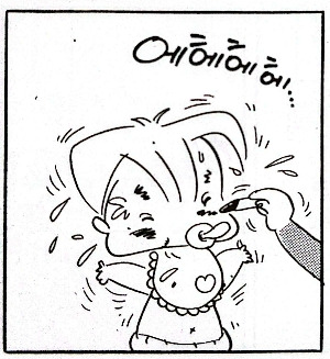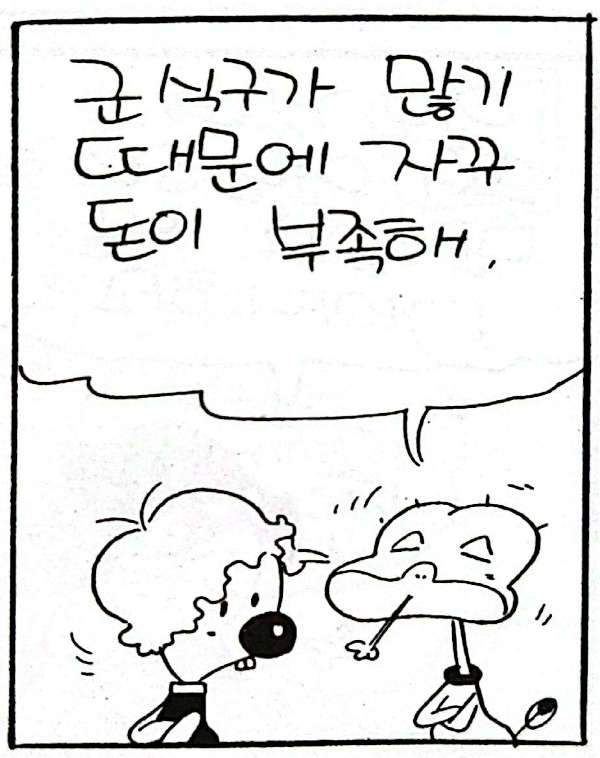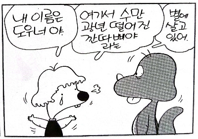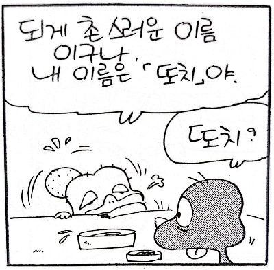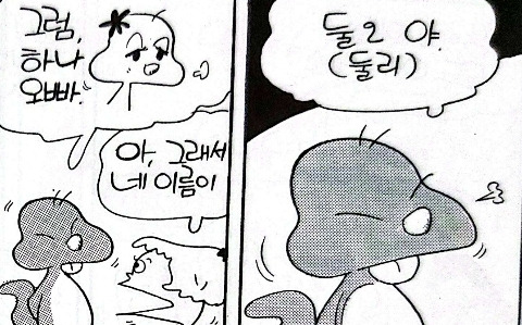 작업이 너무 바빠서 원고에 식자(植字) 작업을 할 시간이 없던 작가는 말풍선 안의 대사도 그림처럼 직접 손으로 적는다. '둘리체'라 명명하여 폰트를 만들어 주길 바랄 정도로 예쁜 글씨는 작품에 거슬리지 않고 참 잘 어울린다. 이 만화를 위해 일부러 손글씨를 만들어 냈다는 표현이 더 맞다고 느껴질 정도다. 한글의 자모를 적절히 축소하고 확대해 만든 글씨체는 완성도 있는 서체의 아름다움까지 보여주며 <아기공룡 둘리>의 핵심 매력인 '귀여움'을 배가시킨다.