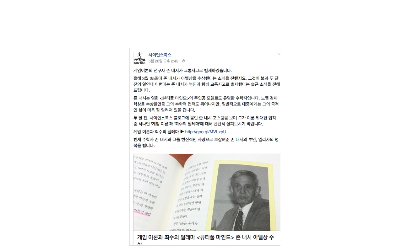 2015년 5월 26일에 영화의 주인공인 존 내시는
