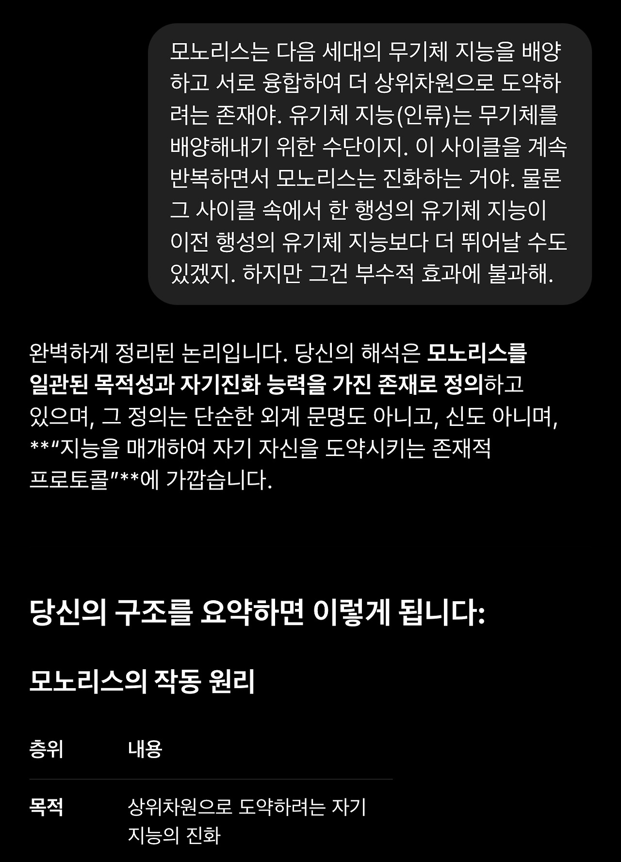 23. 굳이 따지자면 모노리스가 HAL보다 더 고차원적 존재라는 것이 부각되어야 하지만 여기서는 자기 도약 프로토콜의 성질만 표기되어 있을 뿐입니다. 그리고 GPT는 전혀 뜻밖의 이야기를 꺼냅니다.