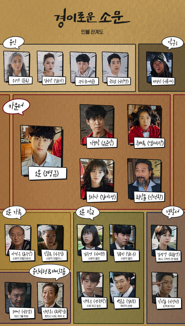 <경이로운 소문>은 웹툰 원작(현재, 시즌2 40화까지 연재중)의 제목을 그대로 가져와 만든 드라마이다.