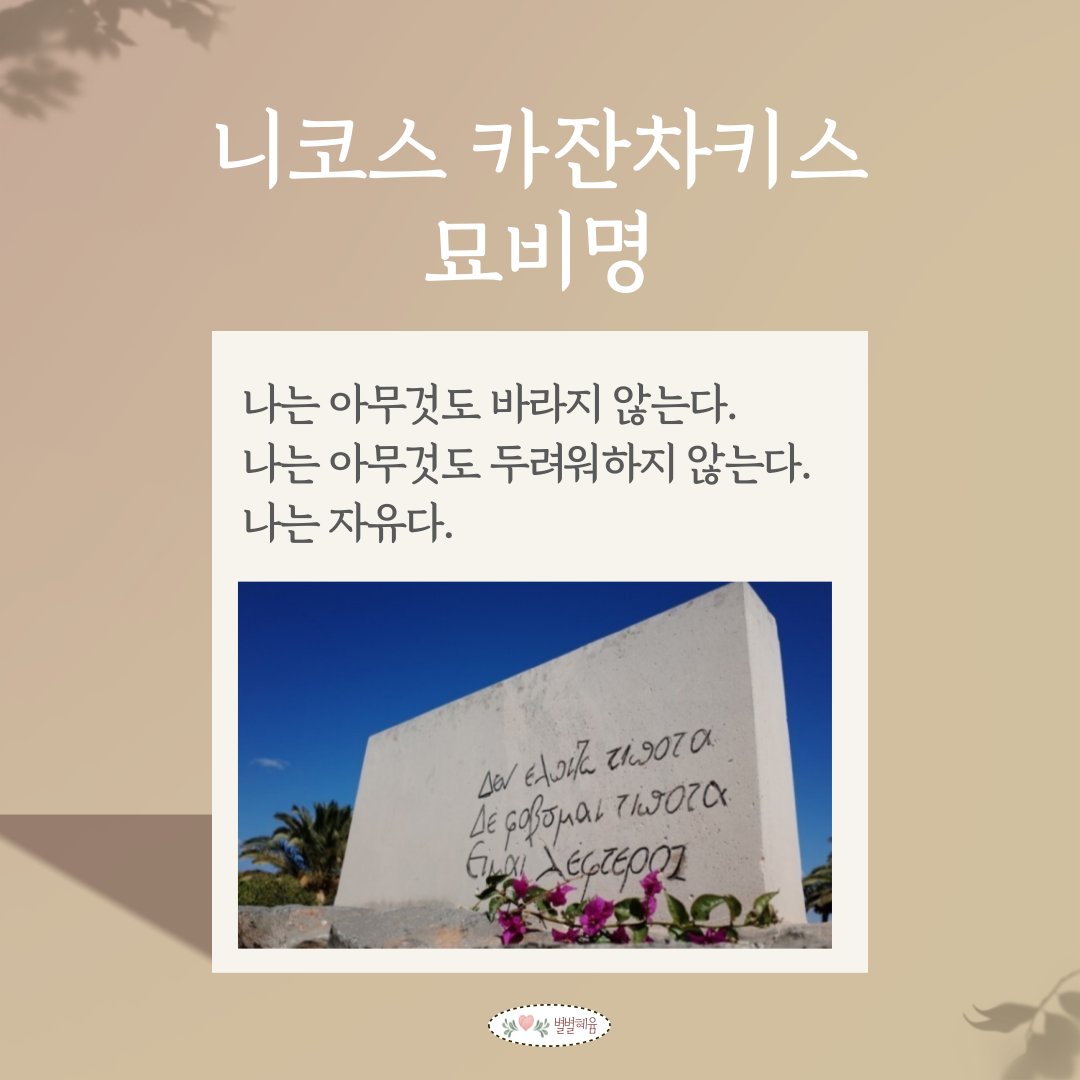 니코스 카잔차키스는 1883년 그리스 크레타 섬에서 태어났다. 당시 크레타 섬은 그리스 본토와 달리 오스만 제국의 지배를 받고 있어 유년 시절 카잔차키스는 험악한 전쟁 분위기에서 자라났다. 게릴라 단체 지도자였던 그의 아버지 미할리스 카잔차키스를 기리기 위해 지은 소설 <미할리스 대장>을 보면 그가 왜 이토록 자유를 갈망하게 되었는지 이해할 수 있다.