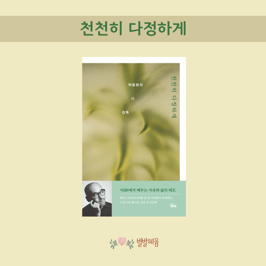 이처럼 독창적인 시 앞에서 나 역시 시와 점점 거리가 생겼다. 시가 어렵다는 이유로, 혹은 내 감수성이 부족하다는 핑계로 나는 시와 멀어졌다. 그런데 이번 주 독서 모임에서 읽은 박웅현 작가의 <천천히 다정하게> 덕분에 그 거리가 한층 가까워졌다.