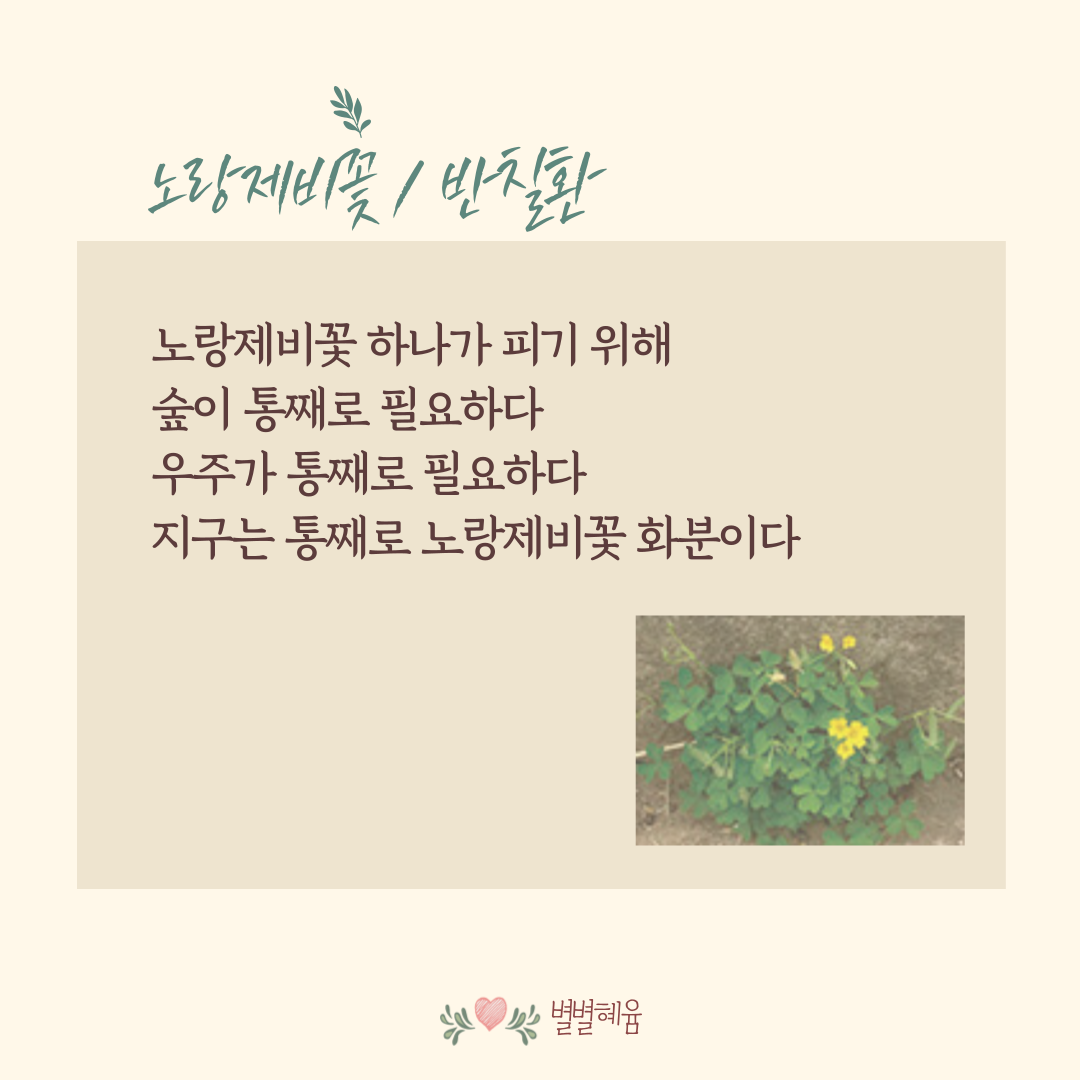 시인들이 자연을 사랑하는 이유가 있다. 우리는 자연을 누리는 일이 밥벌이와 직접 연결되지 않아 무용하다고 생각하지만, 시인에게 자연은, 잊고 있던 본질을 드러내는 영감의 원천이다. 시인은 자연을 관조하고, 그 관조를 언어로 승화시키는 존재다.