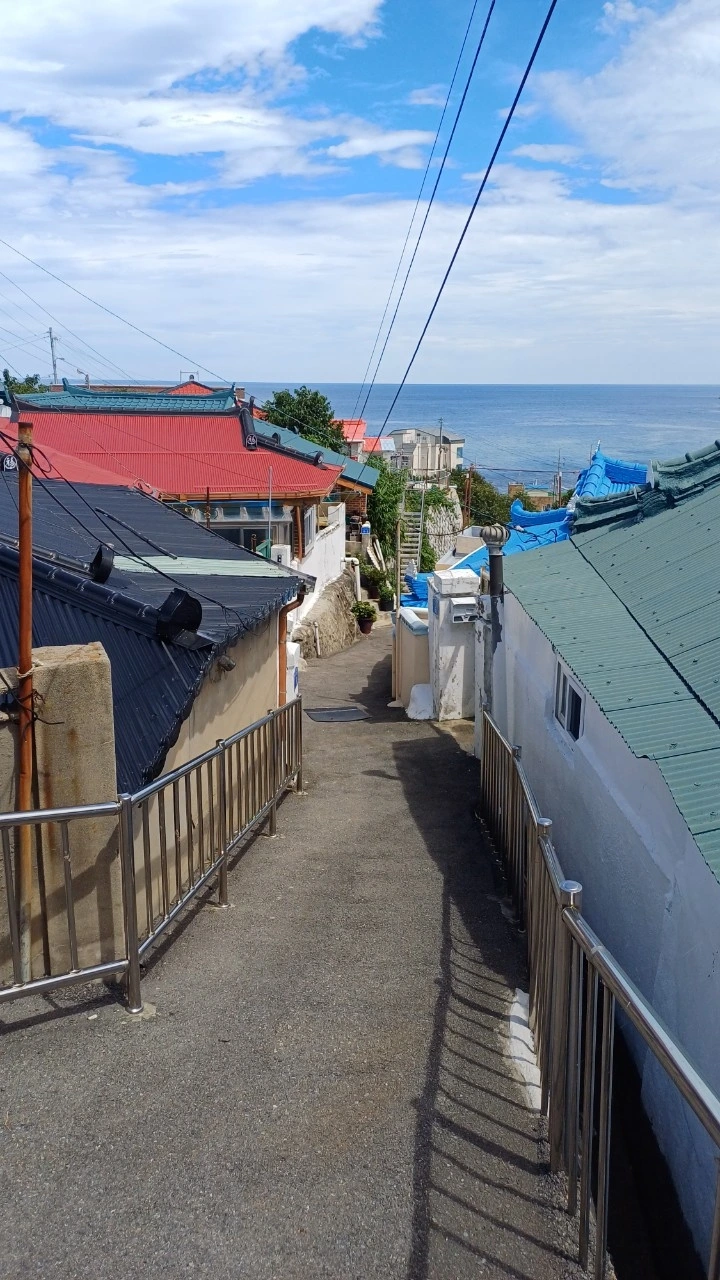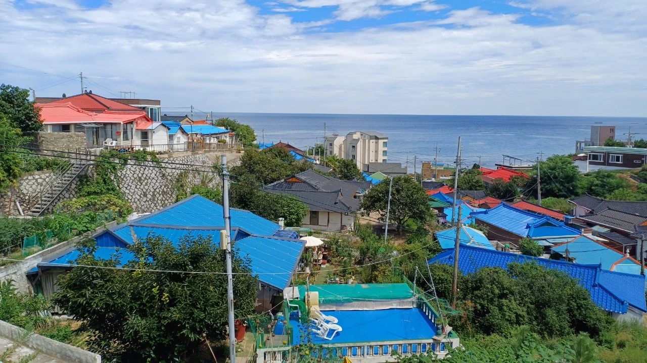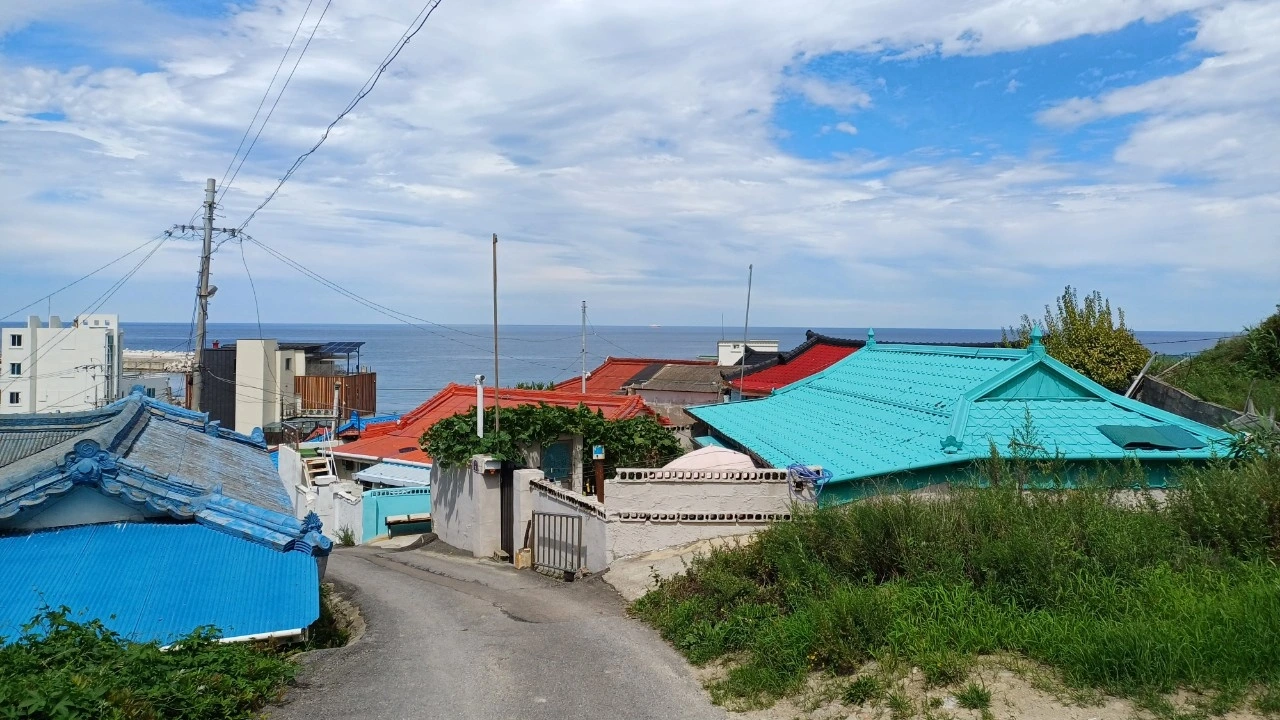 언덕 위에 모여 있는 마을에서 바라보는 넓은 동해 바다의 모습은 평화롭고 아름답기 그지없다. 마을이 한 폭의 그림처럼 아름답게 모여있다.