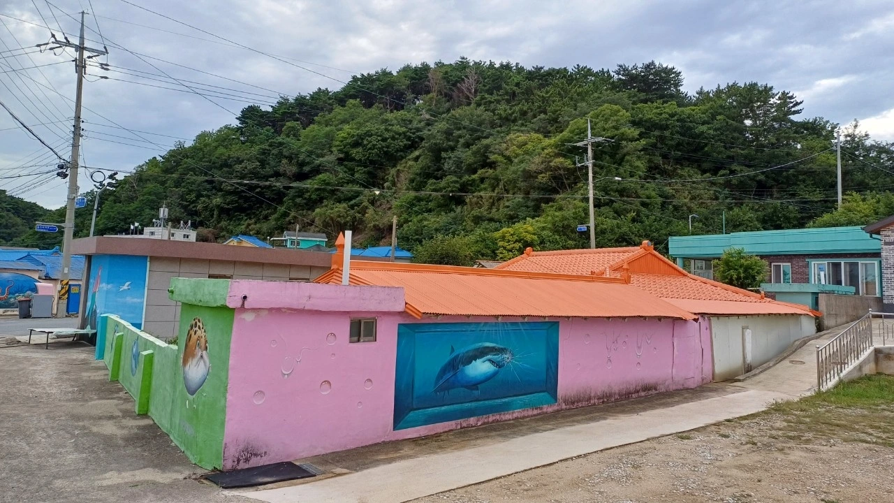 직산항 주변 마을을 걷다 보면 집집마다 바다를 주제로 한 벽화들이 눈에 들어온다. 문어와 고동, 상어와 갈매기, 배와 불가사리, 등대, 대게 그리고 인어 아가씨까지.