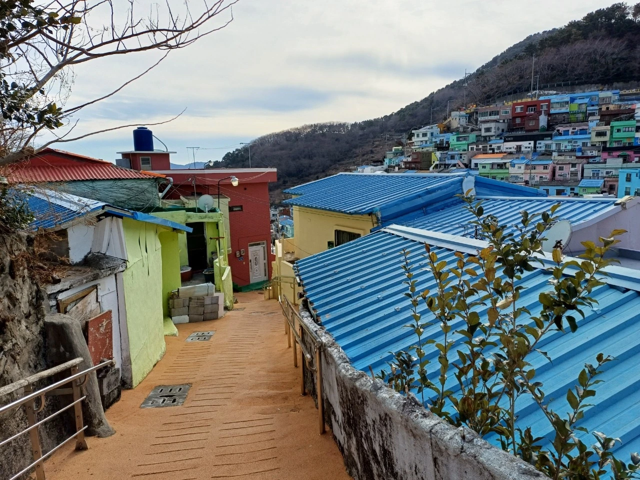 감천마을은 한국전쟁 피난민의 삶의 흔적이 남아있는 곳으로, 과거의 역사와 현재의 예술이 조화롭게 어우러져 있다.