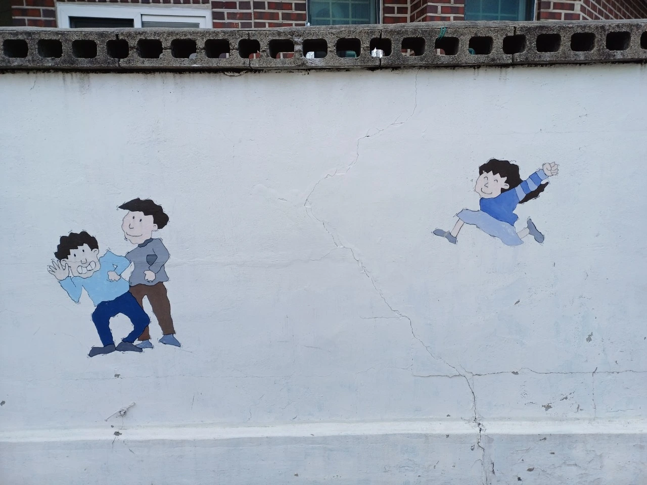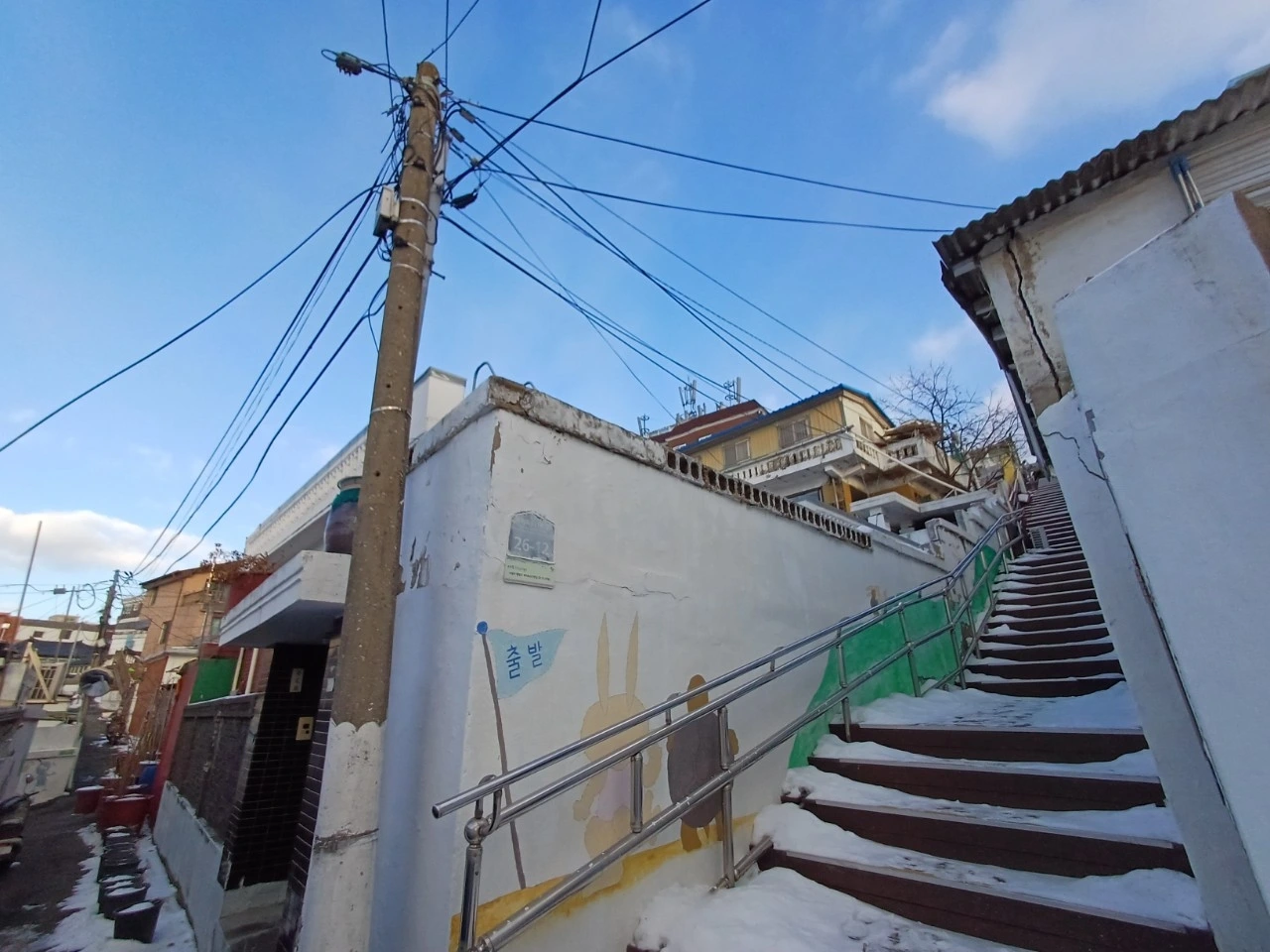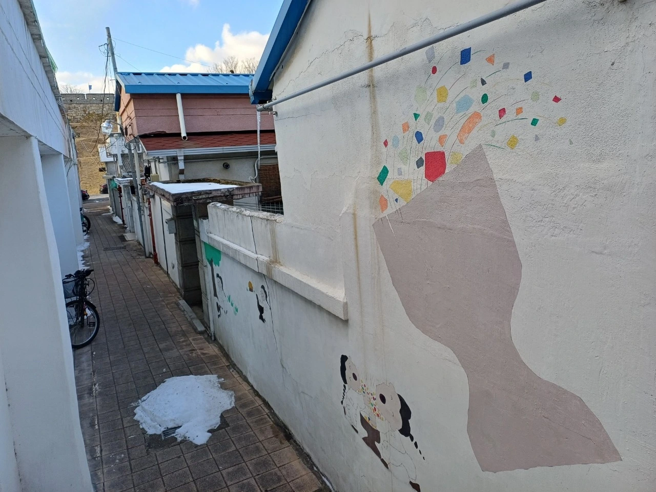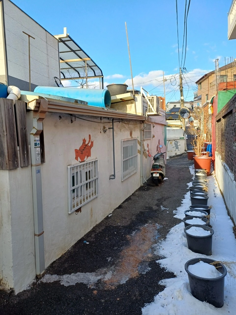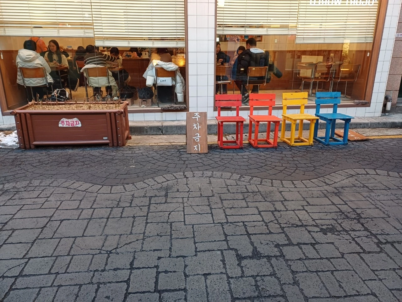 주차하면 '견인해 감'이라든지 위압적인 문구가 적힌 표지판이라든지 험한 분위기를 풍기는 물건을 놓아두지 않고 작은 의자를 색칠해서 예쁘게 놓아둔 신선한 생각에 기분이 좋았다.