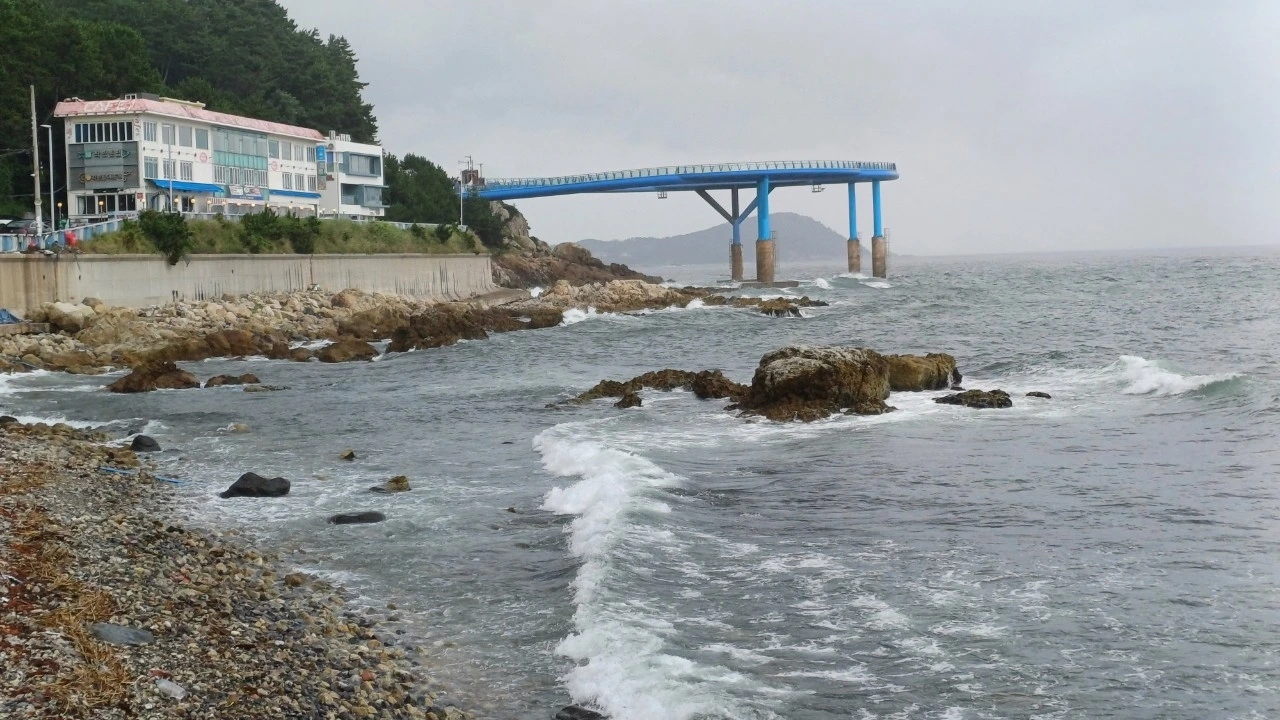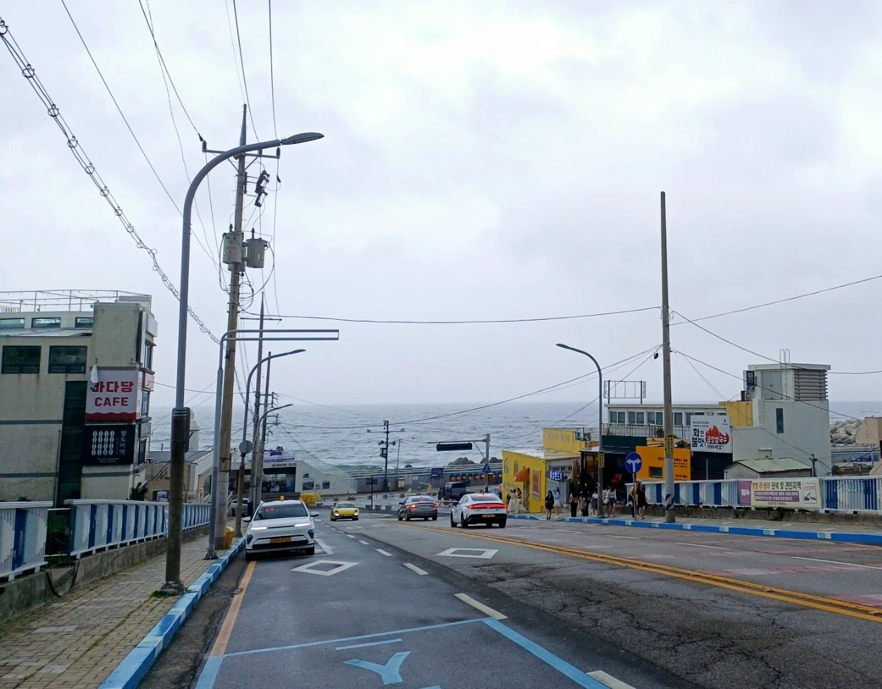 빛도 사라지고 색도 사라진 청사포를 만났다.