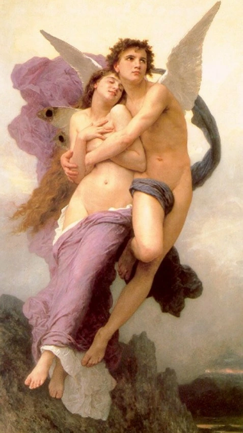 어느 날, 제우스가 비너스를 설득해 프시케에게 신의 음식인 암브로시아를 먹여 그녀를 불멸의 몸으로 살려주자 에로스는 당당하게 그녀를 안고 아내로 표명하며 하늘로 오르고 있다.