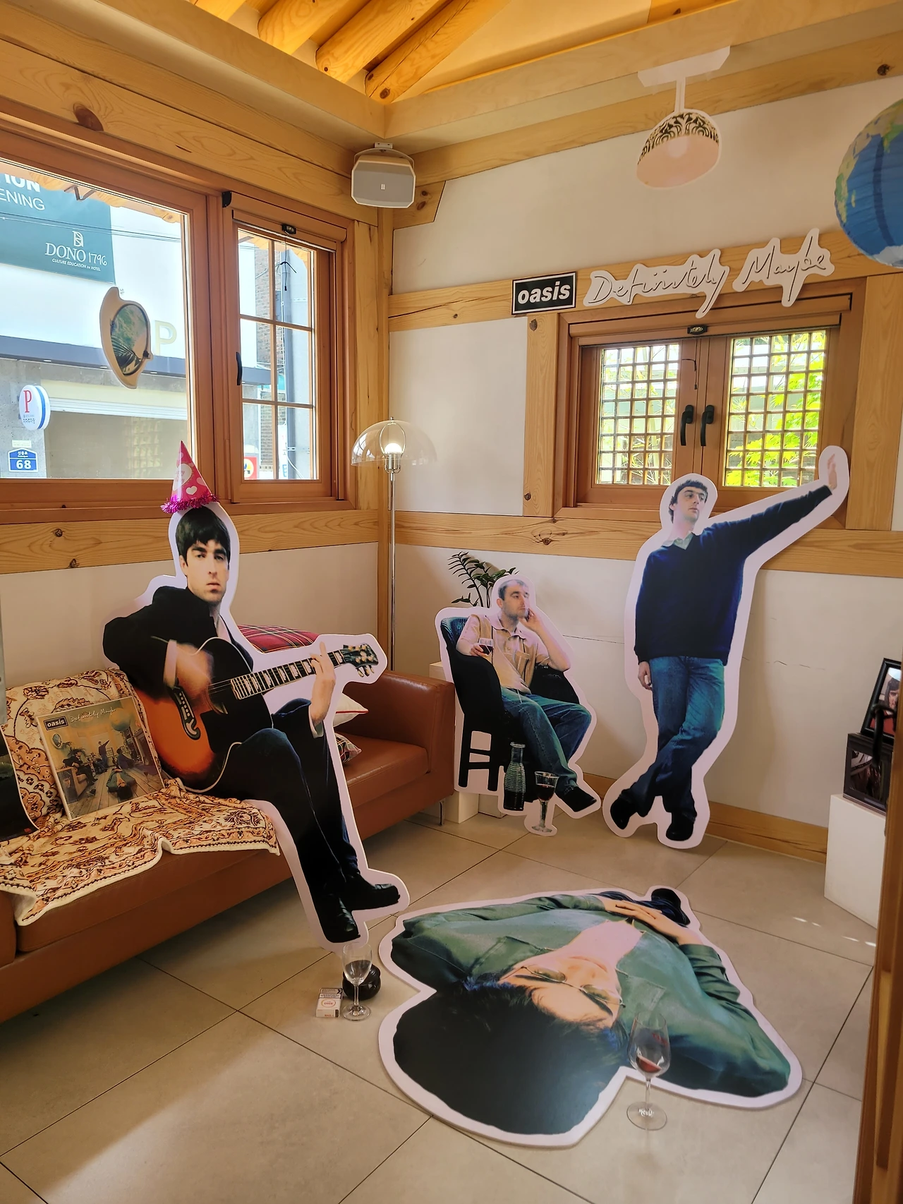 그렇지, 안 오지. 카페 테마는 Definitely MAYbe였다. 아, 현생 속의 덕질은 이런 것이구나. 내 휴대폰 속에나 있던 우중충한 표정의 노엘 갤러거가 청록색의 생기 넘치는 포스터에 합성되어 있었다. 머글과 덕후가 공존하는 이 골목만큼이나 이질적으로. 잘 온 게 맞나 잠시 생각했다.