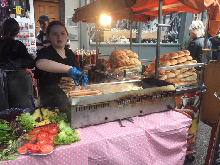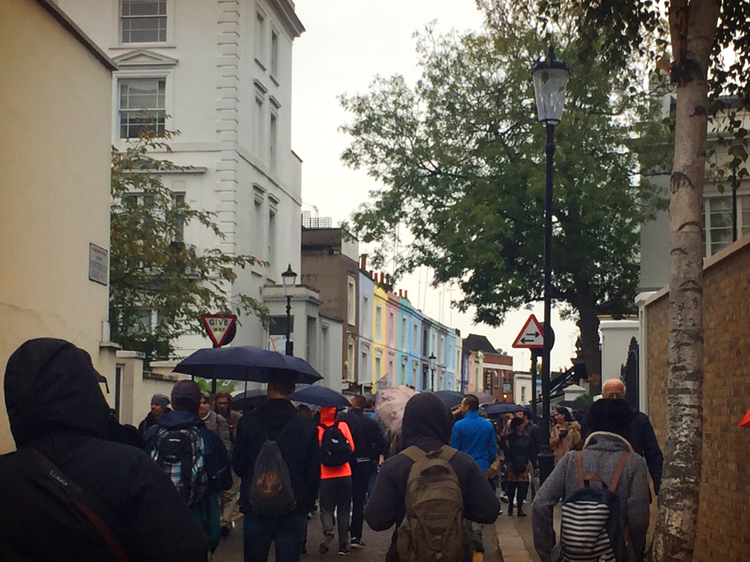 아침을 먹고 주말에 열리는 노팅힐의 포토벨로마켓으로 향했다. 노팅힐 역에 내리니 갑자기 날씨가 흐려졌고 비가 뚝뚝 떨어지기 시작했다. 런던 날씨는 참 변덕스럽다. 하늘이 흐렸다가 금세 맑아지고 또 갑자기 흐려지는게 일상이다. Anna가 여기는 종일 비가 내리는 일이 별로 없다고 했다. 약속 장소에 도착하니 저번에 같이 세븐 시스터즈로 여행 갔던 친구들 중에 3명이 나를 기다리고 있었다. Anna와 아침을 먹고 조금 수다를 떠느라 지각했다. (가다가 화장실이 급해서 유로 공중 화장실에 들렀는데 여기서도 좀 시간을 잡아먹었다.) 포토벨로 마켓은 생각보다 꽤 큰 규모였다. 길 양쪽으로 먹거리부터 다양한 잡화를 파는 가게들, 노점상들이 쭉 들어서 있었다. 분위가는 캠든 마켓과 비슷했다. 나는 지나가다가 한 핫도그 가게 앞에서 멈춰 섰다. 핫도그 빵에 구운 양파와 소시지만 들어갔지만 기본에 충실해보이는 녀석을 골랐다. 그러나 양이 너무 많았다. 여기에 와서 느끼는 거지만, 서양인의 위가 우리보다 큰 탓인지 어디서 뭘 시켜도 양은 언제나 혜자다. 포토벨로마켓을 빠져나오려는데 한 흑인 길거리 연주자와 백인 아줌마가 언성을 높이며 싸우고 있었다. 흑인은 백인 아줌마에게 여기에 나 말고도 다른 길거리 아티스트들도 많은데 왜 하필 나한테 와서 여기서 공연하지 말라고 시비냐며 인종차별주의자라고 했다. 사실 따지고 보면 저 흑인이 하는 말이 틀리진 않다. 여행하면서 느낀 것이지만 유럽에서는 백인들이 대놓고 인종차별을 하지 못하니까 조금이라도 트집 잡을 거리가 생기면 백인들보다 훨씬 엄격한 잣대를 들이미는 것 같다.