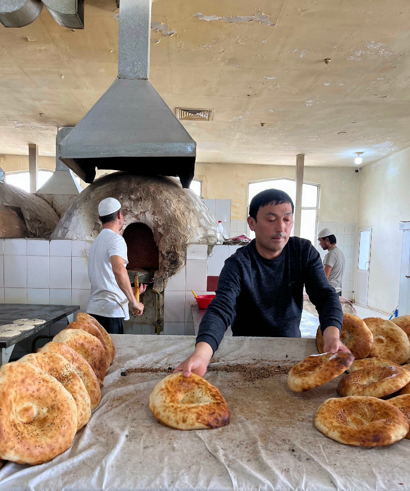 화덕에서 구워 나온 우즈베키탄 빵 넌. 1개에 약 300원 정도.