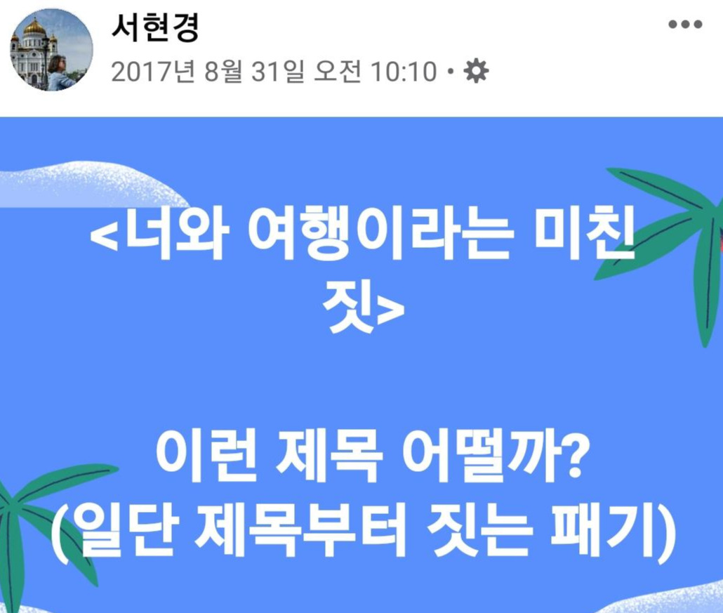 나의 세 번째 책 <너와 여행이라는 미친 짓 1,2>우연히 떠올린 그 제목이 현실이 된 것이다.