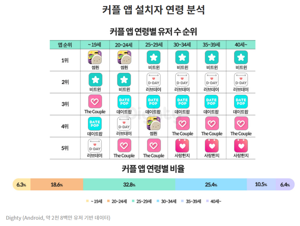 커플 앱 설치자 연령 구성 표를 참고해 나이를 27세로 설정했다(나이).