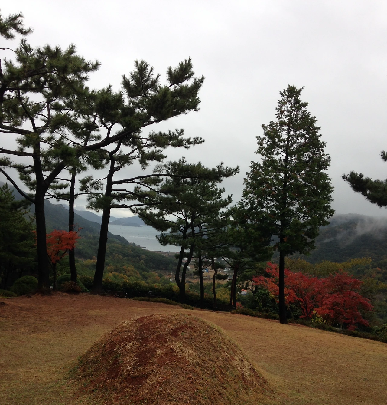 아쉬움과 함께 길을 오르니 아담한 무덤 하나, 소박한 무덤이 멀리 통영 바다를 안고 가을을 머리에 이고, 편안히 안식하고 있다.