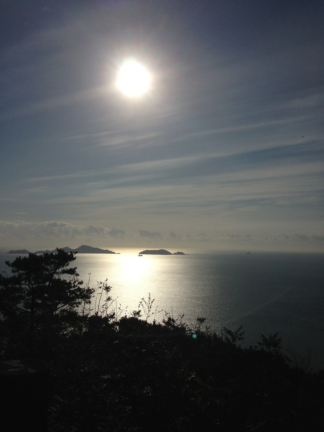 나무숲에 가려 바다는 보이지 않고, 유난히 많은 산새들의 소리가 합창을 이루고 있다. 새소리도 여러 가지 종류이고, 서로가 서로를 부르는 것 같은데. 청아한 소리, 약간 탁한 소리, 하이 소프라노, 여기에 저음인 까마귀까지 가세하여 한데 어우러지니 산속의 합창이 울려 퍼졌다. 이렇게 많고 아름다운 산새 소리를 듣다니, 나에게는 특별한 선물이었다.