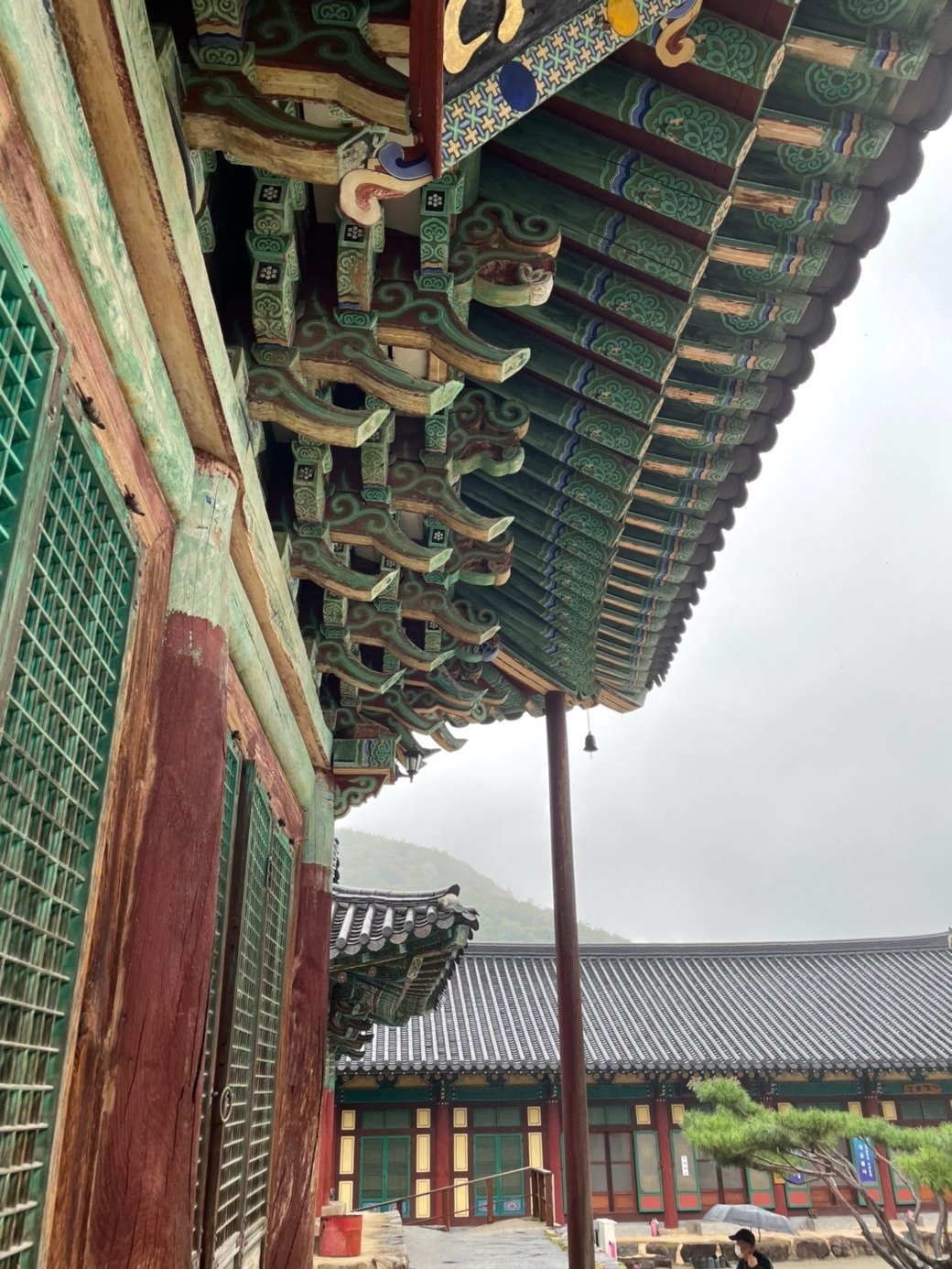 기와의 선들이 너무 날렵하지 않고 수줍은 듯 부드러운 선에서 끝나, 천정을 받치고 있는 정교한 선들과 조화를 이루고 있어, 조선 중기 그 세월로 우리를 잠시 이끈다.