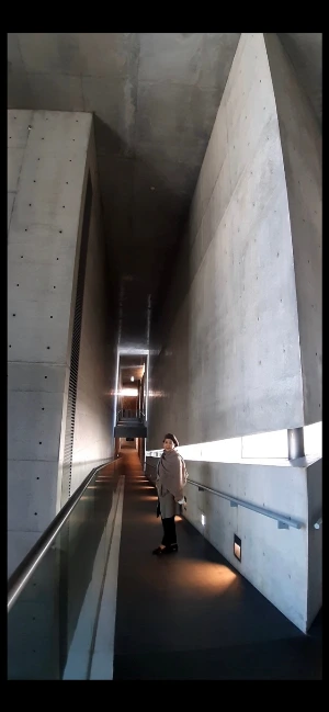 안도 타다오의 건축물은 늘 하늘로부터 천장을 통하여 쏟아지는 빛을 활용해 건축물의 다양한 변화를 표출한다. 긴 복도에 내비치는 그림자의 변화로 각각의 그림을 그리며 내 안에 숨겨있던 그림을 더해내며, 햇살 밝은 날의 아침으로, 비 오는 날의 오후로, 때로는 희망으로, 때로는 절망으로.....