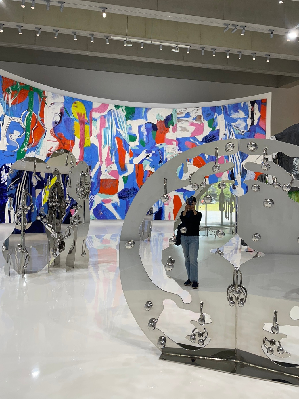 전시자체를 관람객과 유기적인 소통의 장으로 만들려는 작가의 의도처럼 조각 사이를 걷는 자신의 모습이 거울로 조각표면이 되어있는 작품에 투영 되어 나 또한 전시의 일부가 되는 느낌을 받는데, 이것이 작가의 의도였다 하니......