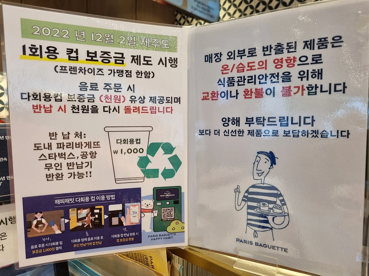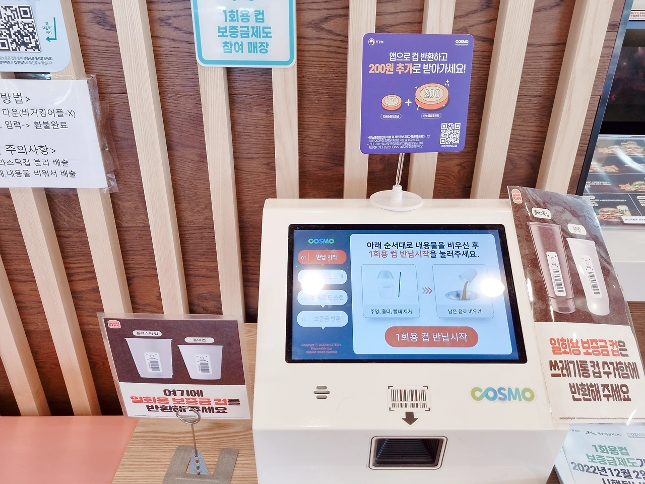 스타벅스뿐만 아니라 맥도널드 버거킹등 각종 프랜차이즈 커피 전문점에서도 테이크 아웃을 하는 경우에는 금액이 발생한다. 스티커를 잘 확인하시고 꼭 환급을 받으시기를 바란다.