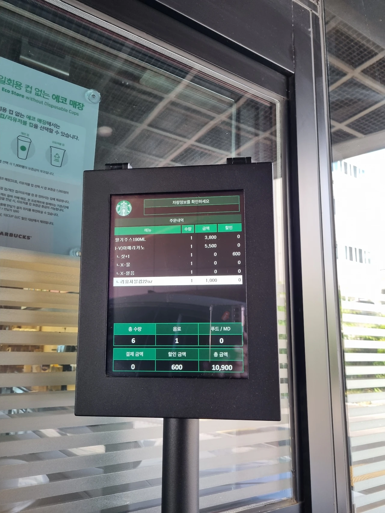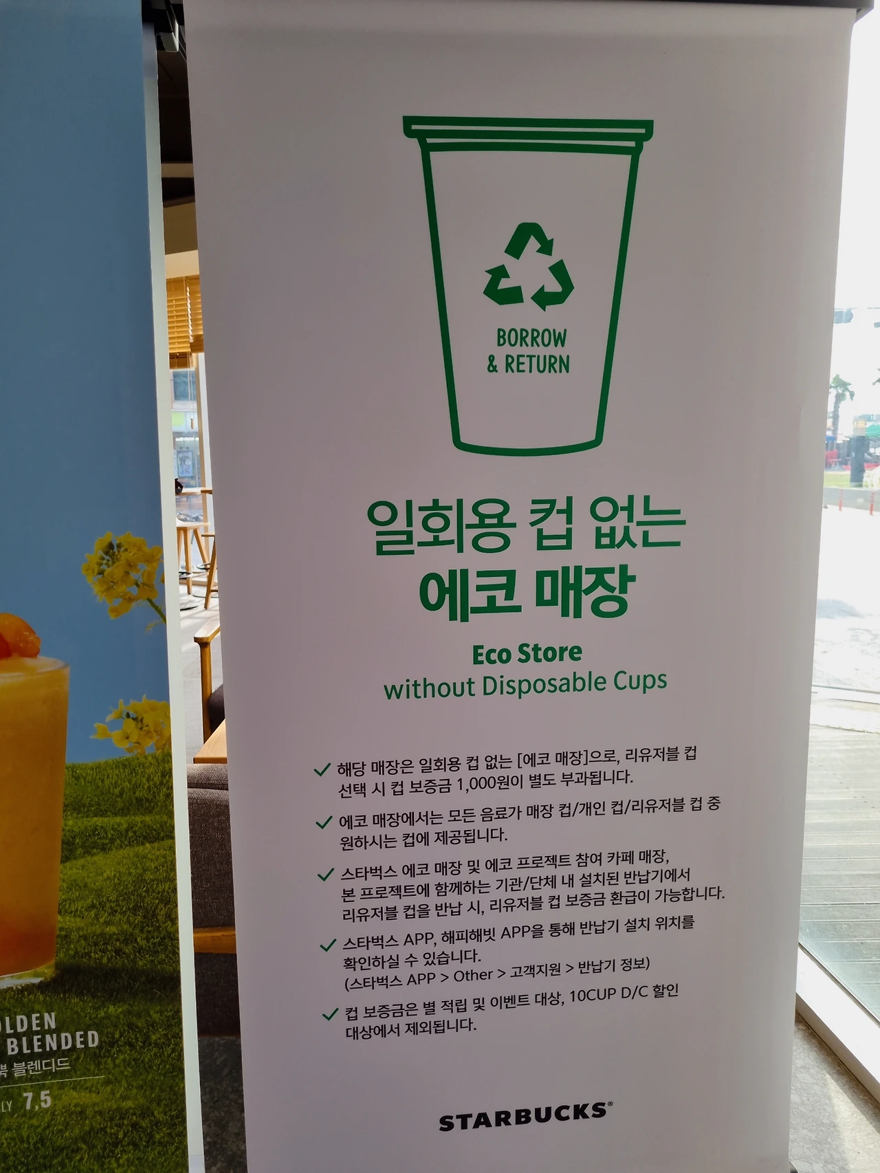 이거 왠지 아까운 느낌이 드는데? 결코 만만하지 않은 스타벅스 커피의 금액에 리유저블 컵 보증금 1000원이 더해지니 웬만한 한 끼 밥값이 되었다. 남편과 나의 컵을 합하면 2000원의 추가 금액이 결제가 되는 것이다.