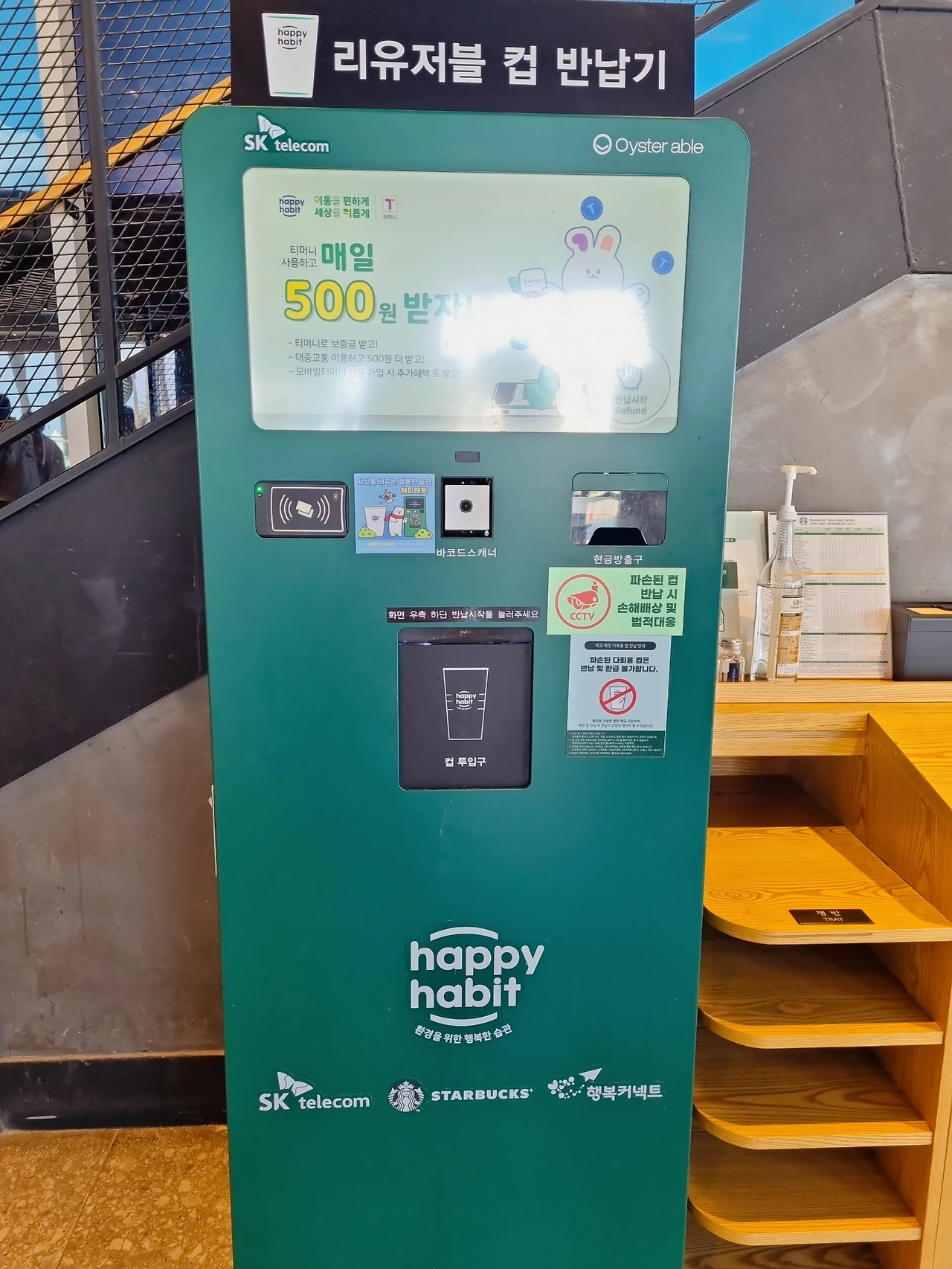 해빗컵을 최대 5개까지 반납할 수 있다. (꼭 하나씩 넣어야 한다.)