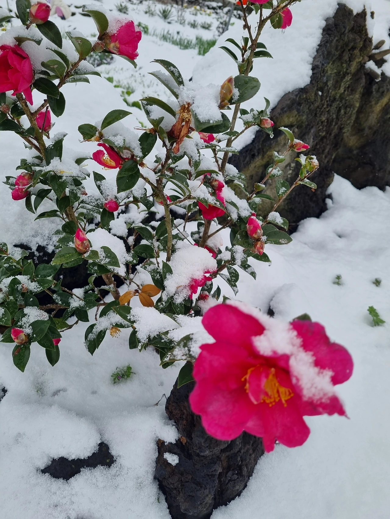 사실이었다. 남편과 나는 어제 마트에 가서 비상식량을 구비했다. 혹시 모를 고립에 대비하기 위해서다. 중산간지역에 살며 배달의 민족이 닿지 않는 곳이라 냉장고 두 대에 먹을 것을 넉넉하게 챙겨두지만 왠지 조금 더 준비해둬야 마음이 편할 것 같았다. 마트에는 이미 사람들이 많았다. 나는 속으로 '모두 고립을 준비하는 건가?'하며 웃었다. 불시에 고립되는 것은 두렵겠지만 적당히 의도적인 고립은 설렘을 준다. 그렇게 눈이 내리기만을 기다렸는데 드디어 눈. 눈이 온 것이다.