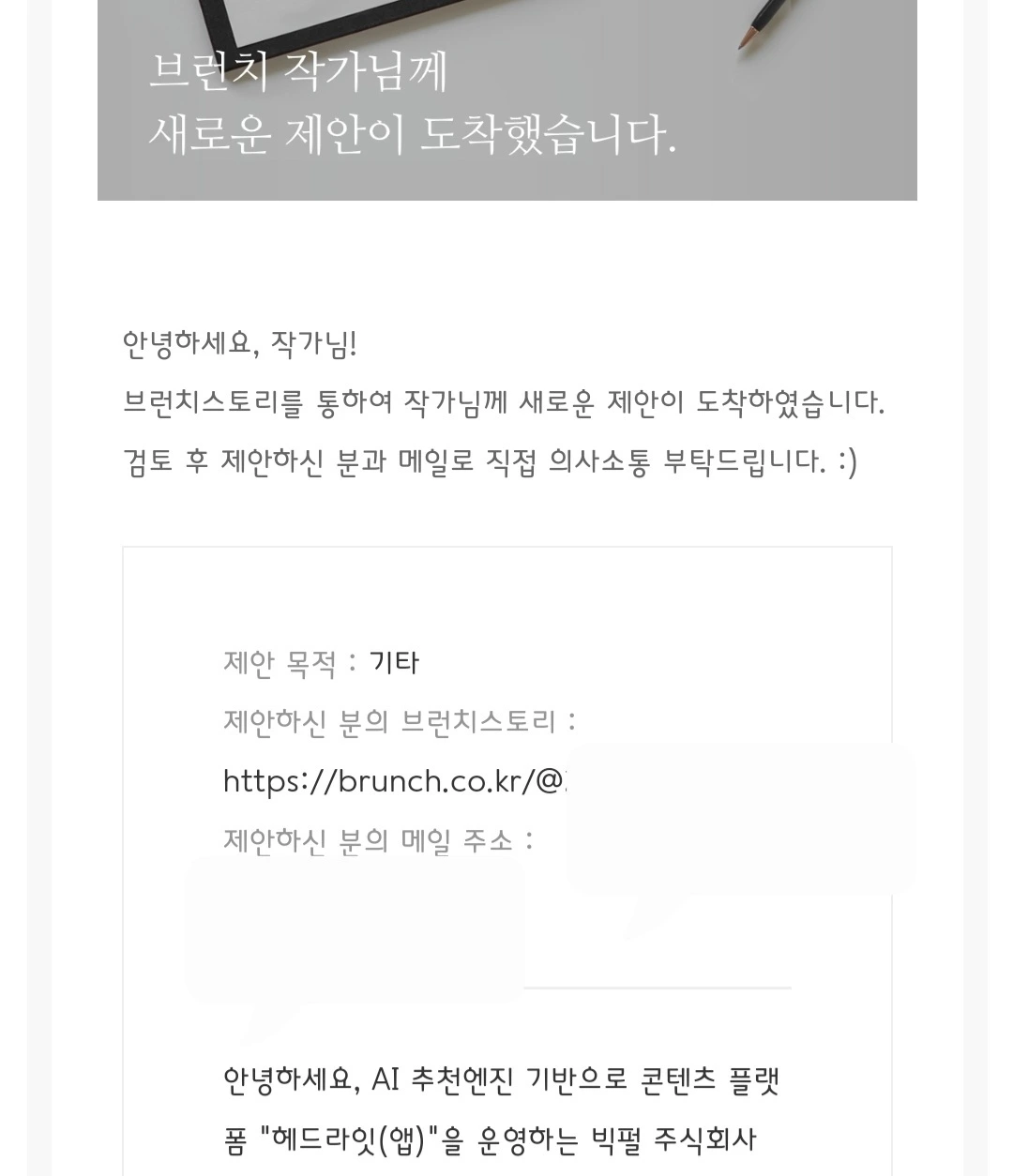 기분 좋은 제안 메일이 나에게도 도착했다.