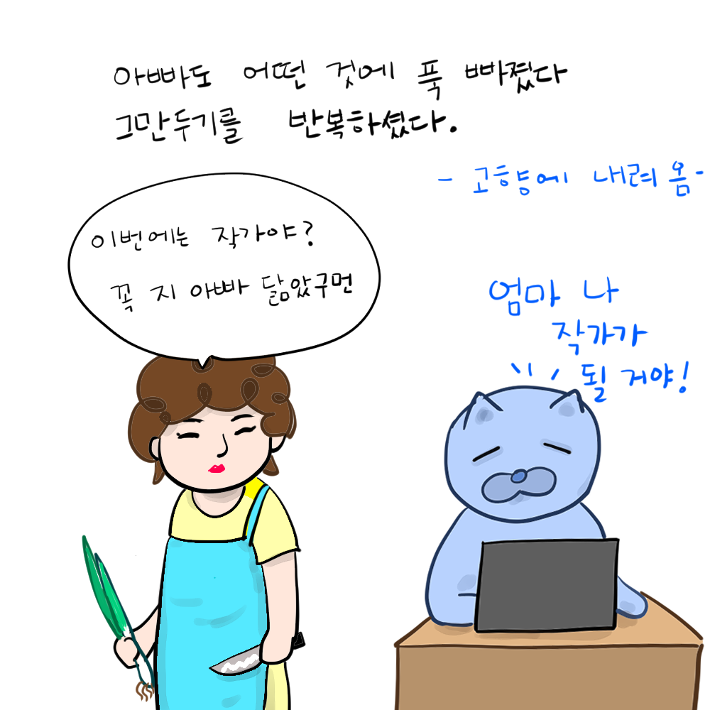 유튜브 '고양이 식당 이야기 '채널을 운영하고 있습니다. 하늘색 고양이의 작은 식당이라는 세계관의 요리에세이채널입니다. www.youtube.com/@고양이식당이야기