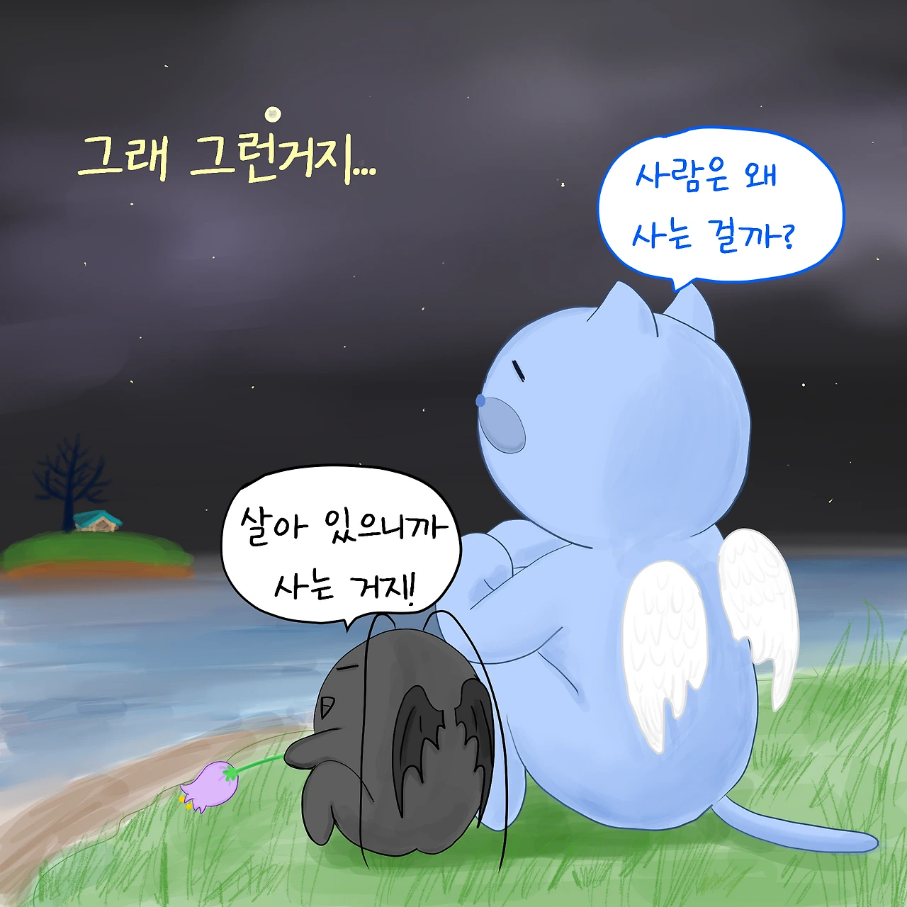 현실과 상상이 혼재된 공간 어디선가에서 고양이와 어두미가 대화를 합니다. 고양이의 다음 질문은...