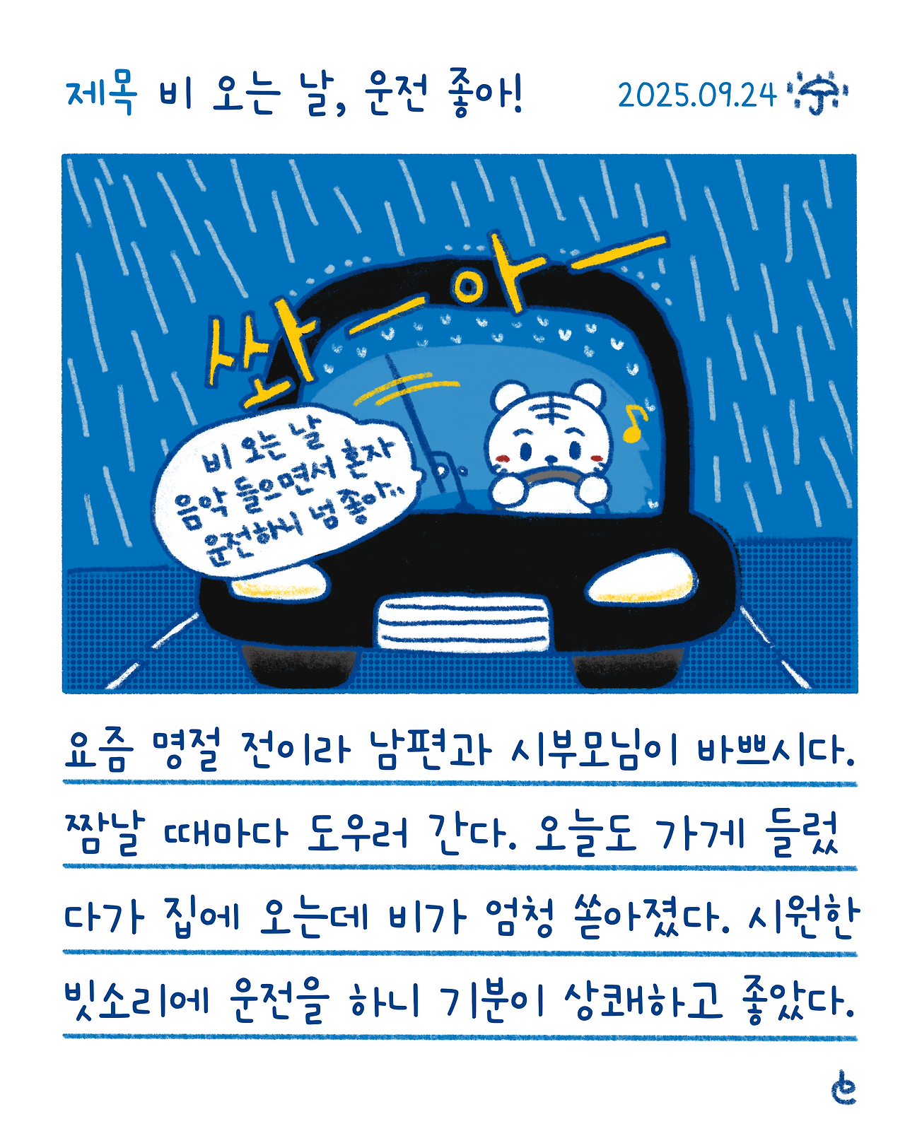 #블루챔버 #그림일기 #일상 #하루한컷 #비오는날운전좋아 #비오는날 #운전