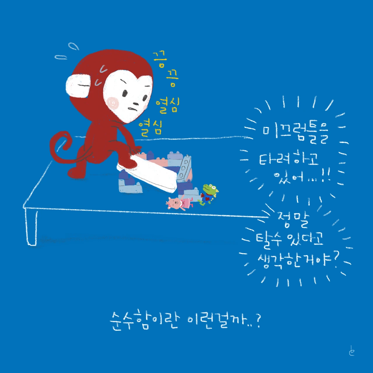 소띠 아빠, 호랑이띠 엄마, 원숭이띠 딸, 돼지띠 아들. 소소한 육아와 일상 이야기를 그리고 있습니다.